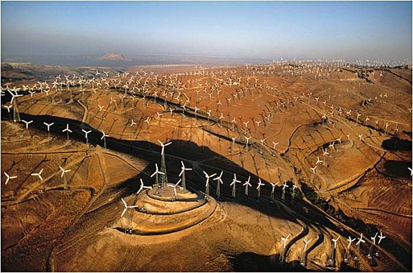 Un champs de 5000 éoliènnes produisent 3% d'énergie grace au vent qui souffle régulièrement au col du Tehachapi
