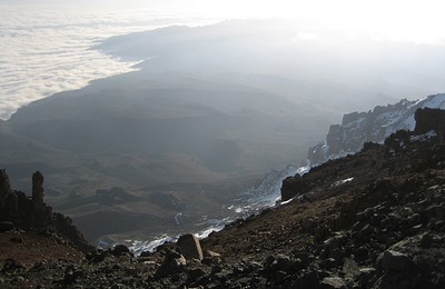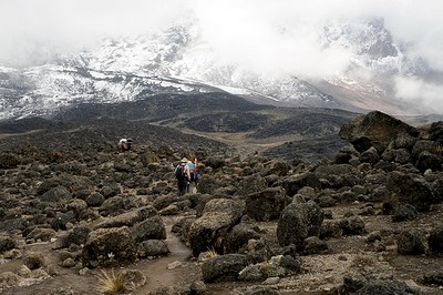 Au-dessus de 5 000 mètres d'altitude, presque rien ne vit. Le peu de précipitations qui tombent s'infiltrent quasiment immédiatement dans le sol ou s'accumulent sur les glaciers. Toutefois, Helichrysum newii a été trouvé près d'une fumerolle du cratère Reusch. Des lichens à croissance très lente comme Xanthoria elegans peuvent également vivre plusieurs centaines d'années jusqu'au sommet. Le seul animal découvert à ce jour au Kibo est une espèce d'araignée.